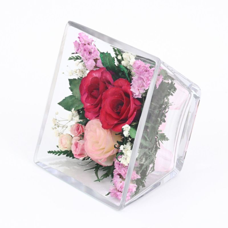 特殊加工を施した生花をガラスの中に閉じ込めました。