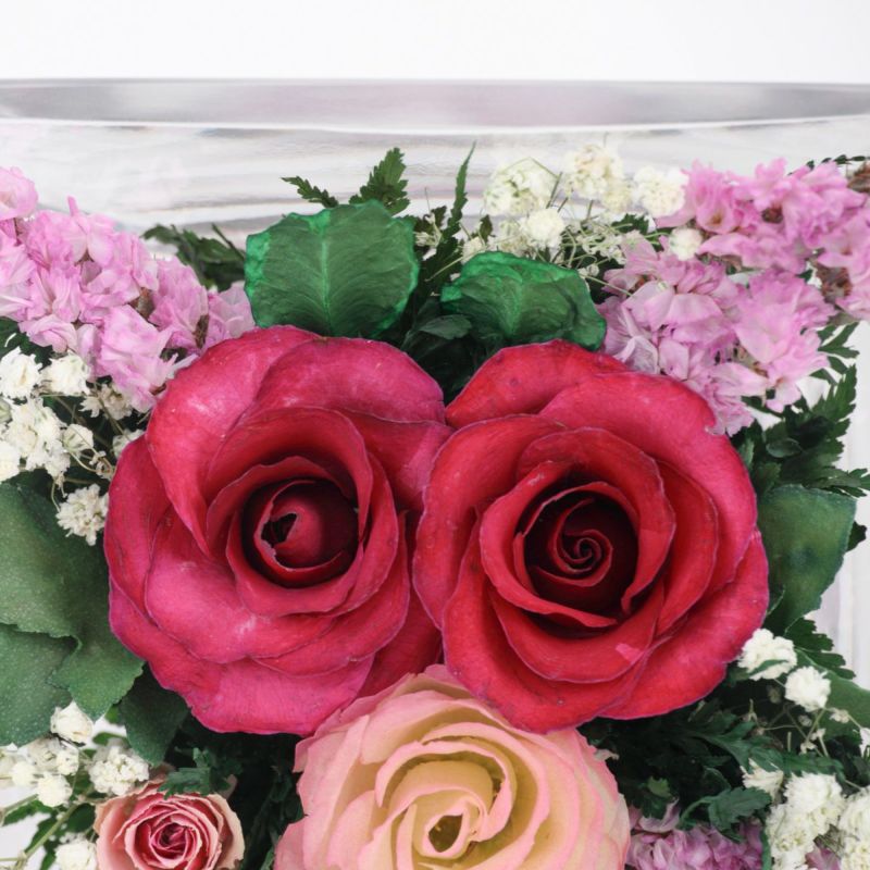 特殊加工を施した生花をガラスの中に閉じ込めました。