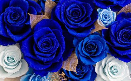 専用の染料で色をつけており、そのバリエーションは多種多様。生花にはない鮮やかな青バラも人気です。